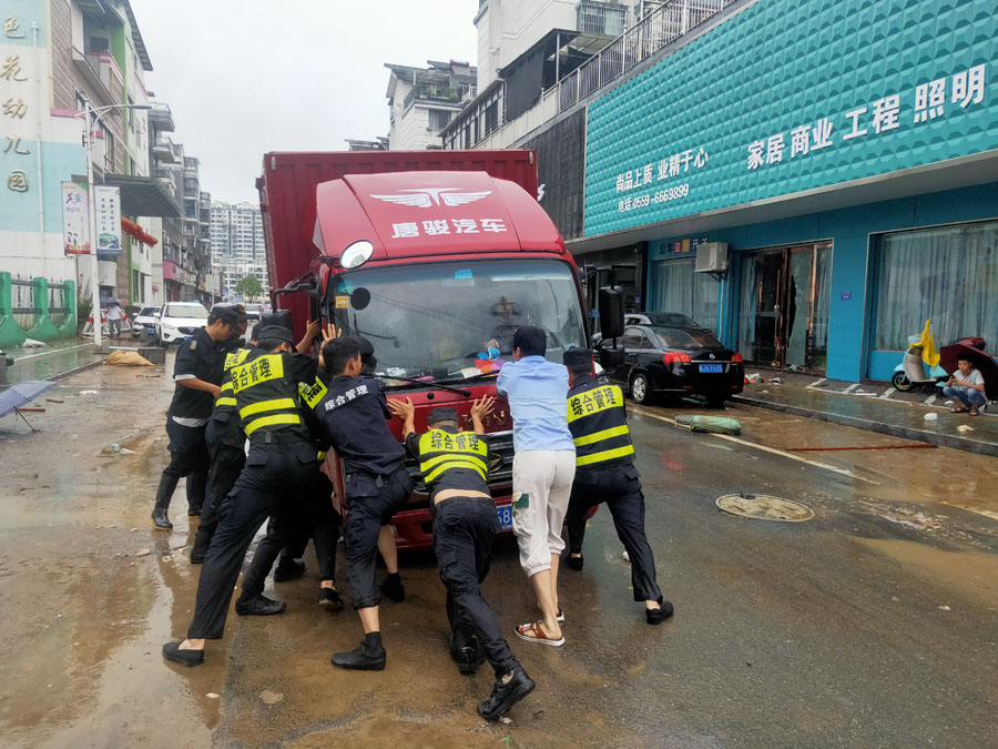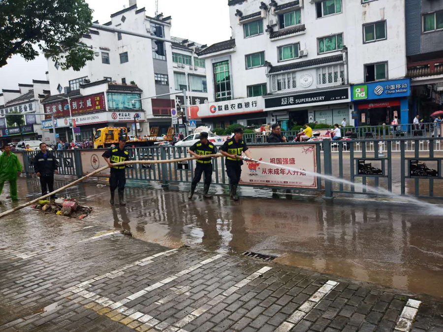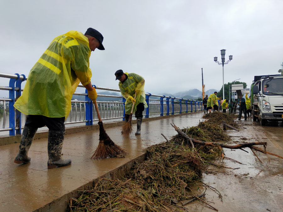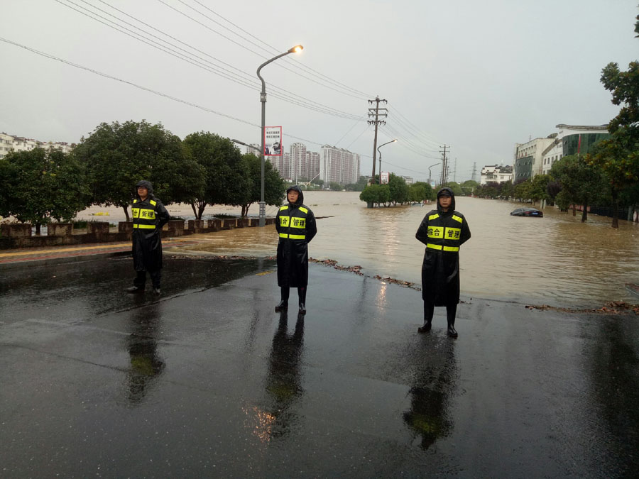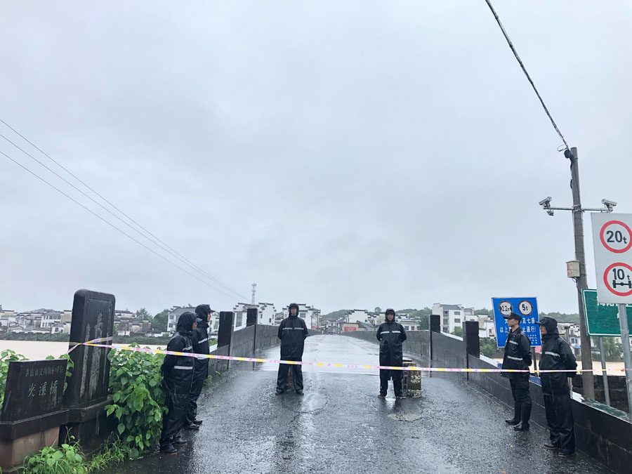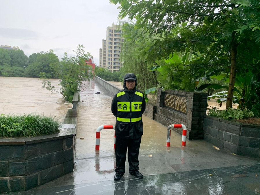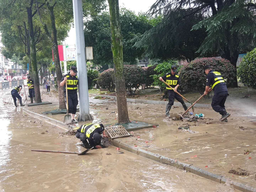 宗保公司驻黄山区域全体队员在各区县城市管理执法局的带领下,按照预定方案奔赴各自岗位,紧张有序地开展各项防汛保障工作。