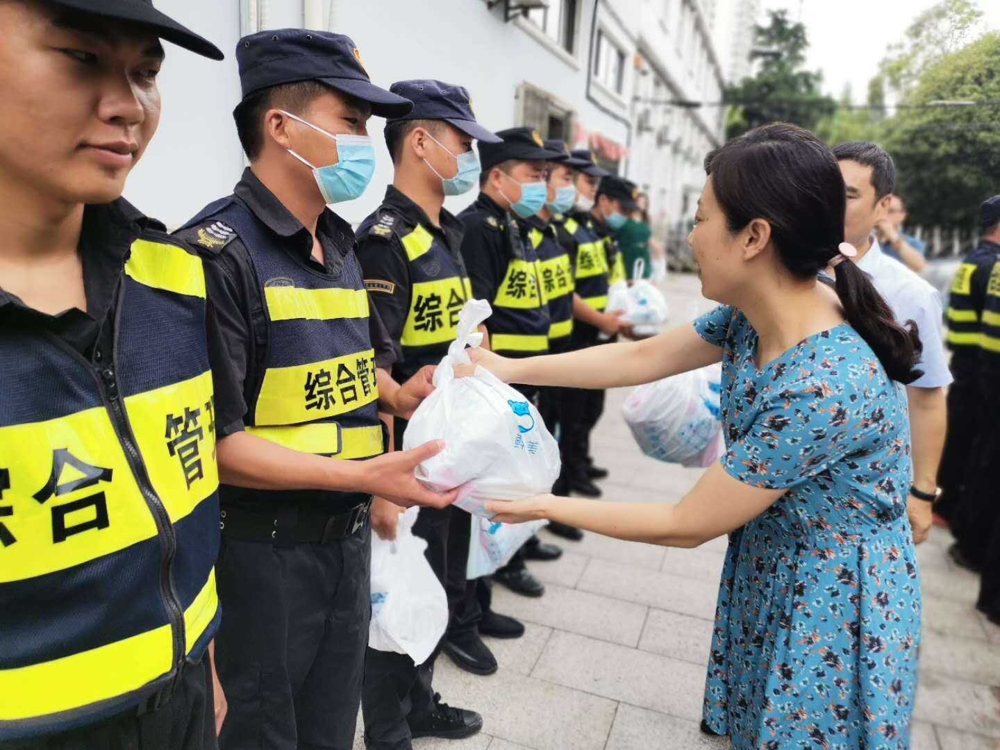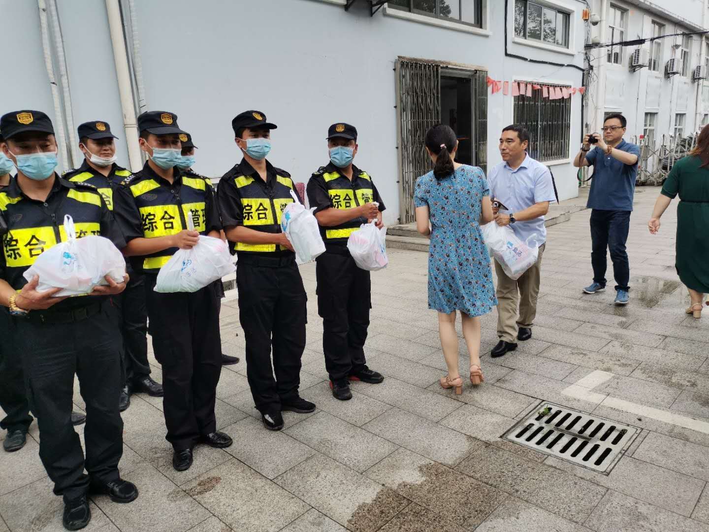 7月13日,杨思社区领导赶赴宗保公司驻三林市容项目,慰问奋战在一线的城管辅助队员,送上夏季防暑清凉用品,并向疫情防控期间众志成城、拼搏奋战,克服各种困难,积极投身防控一线的宗保队员表示感谢。