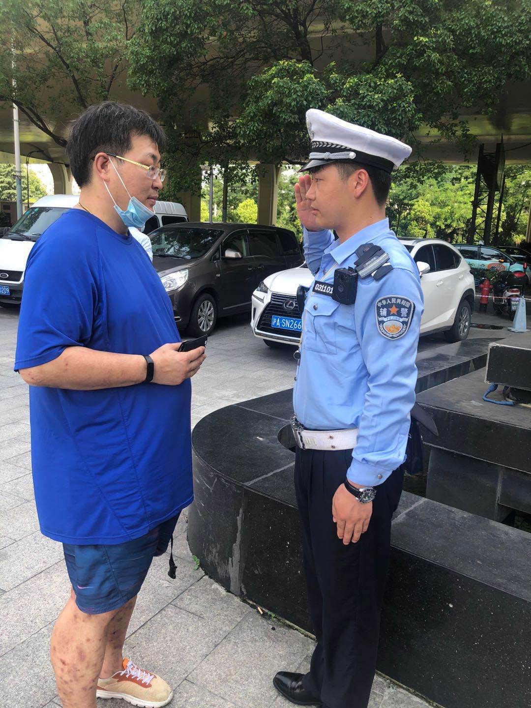 7月12日8:10,宗保公司驻闵行莘庄交通辅警项目队员姜祖林在沪闵莲花路口执勤时捡到一只钱包。小姜打开执法记录仪清点钱包内物品,包内装有现金若干,身份证一张,各类证卡若干,钱包内还有一个联系号码,小姜通过电话联系到失主,并和失主约定好见面地点。