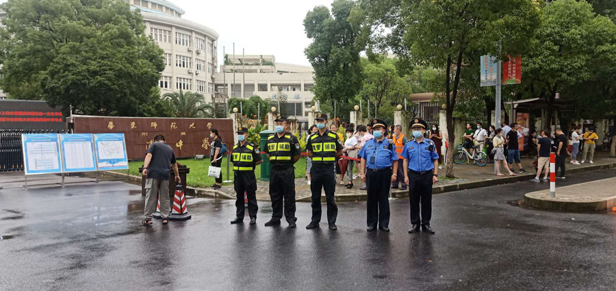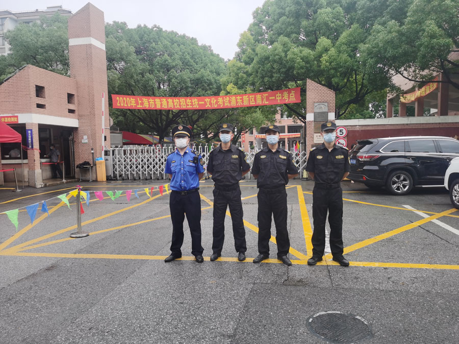 公司挑选近200名素质过硬、业务精干的队员担负周浦中学、南汇一中、南汇中学、华师大二附中、金山卫镇金卫中学等考点附近相关道路的保障任务,配合有关部门对考场周边的噪音污染、占道设摊、交通不畅、体温测量等工作进行辅助管理。高考日,考点周边的大街上、校门口、大雨中,都闪现着宗保人护考的身影,他们顶着潮热、冒着大雨、一丝不苟,为助力学子圆梦值守护航。