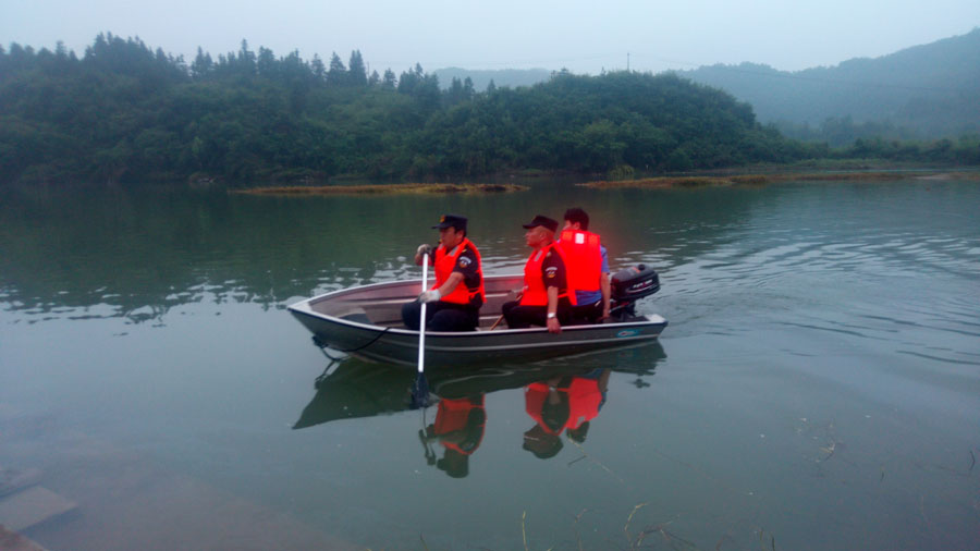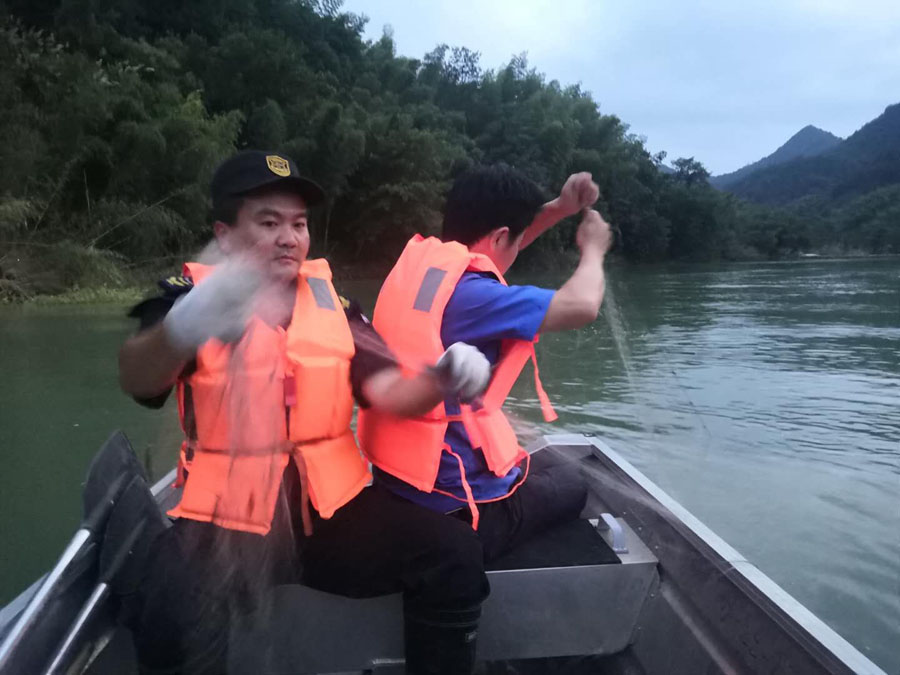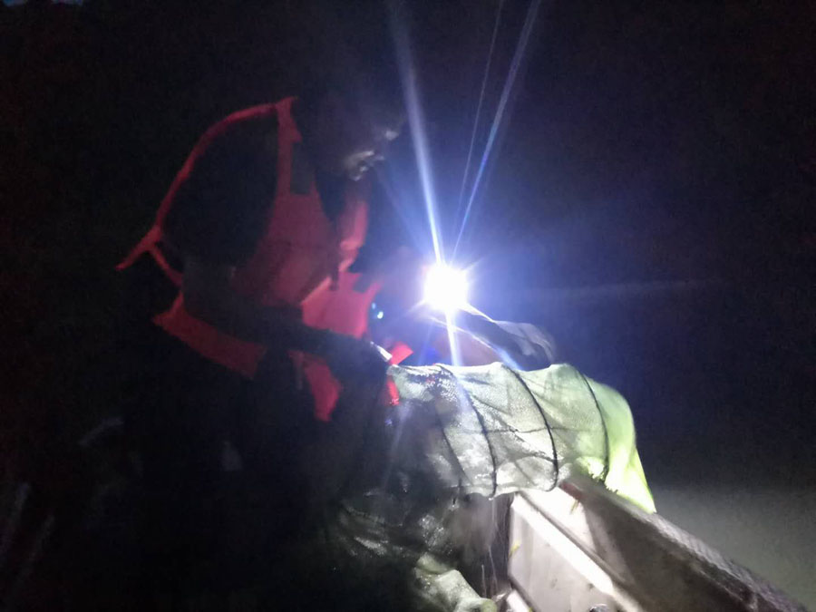 汛期洪水过后,齐云山辖区横江流域水位迅速下降,附近渔民趁机下网布笼进行非法捕捞。为保护横江生态环境,在齐云山景区管委会的组织和带领下,宗保队员于7月14日18:00和15日凌晨3:00两次出击,在齐云山辖区横江水域协助执法部门打捞并收缴地笼20多副、鱼网30多副。
