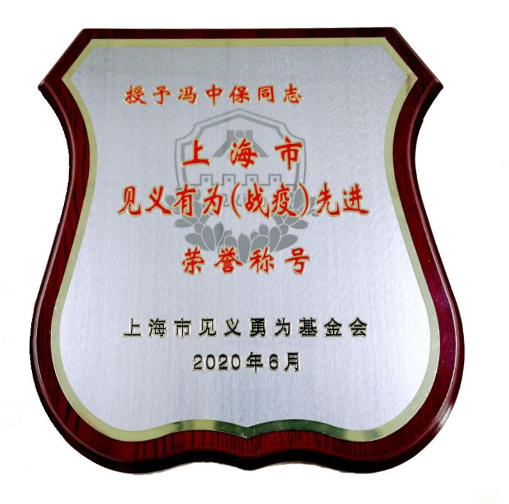 7月24日上午,市见义勇为基金会在市司法局召开上海市见义有为“战疫”先进表彰座谈会,宗保公司董事长冯中保被授予“见义有为(战疫)先进”荣誉称号,参加会议并交流发言。