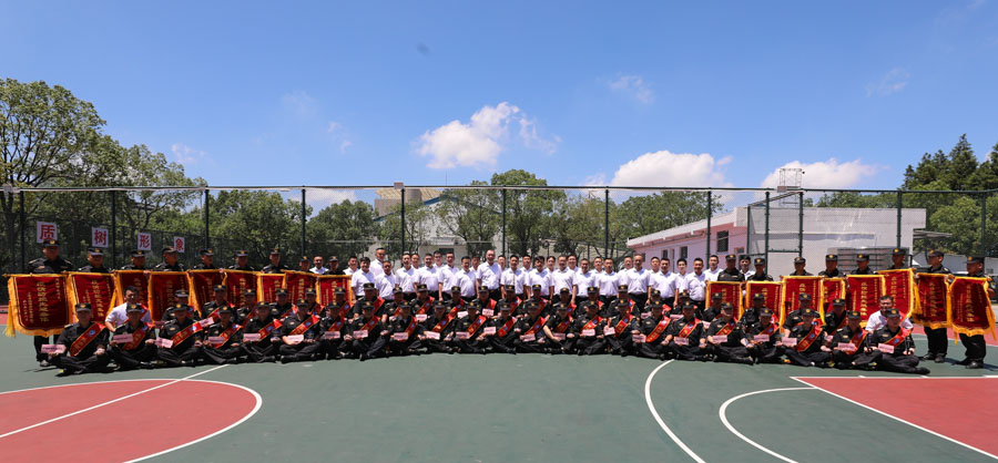 晏军总经理宣布24个团队被评为公司疫情防控先进集体;王耀副总经理宣布55名员工被评为公司疫情防控先进个人,10名员工荣获公司疫情防控特别贡献奖。随后,公司领导向获奖的团队和个人代表颁发了锦旗、证书和奖金;向10名退役军人员工代表赠送了“八一”纪念品。崇明区域副经理宋黑旦代表公司1600多名退役军人做了交流发言。