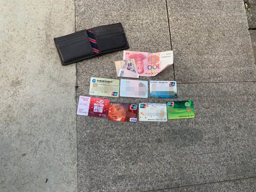 7月30日8点30,浙江民泰闲林辅警项目早班组组长杨有福,巡逻至西溪华东园东门口非机动车道时,在路边捡到一个钱包,里面有现金105元,一张超市购物卡以及个人证件和数张银行卡。 杨有福在现场等了二十分钟左右,不见失主过来寻找。随后就把钱包带回闲林派出所,交给值班室。值班人员随后查询失主联系方式,通知失主前来认领。 杨有福队员这种拾金不昧,主动上交,寻找失主的行为和表现,值得学习称赞和表扬。 (供稿人:方锐)