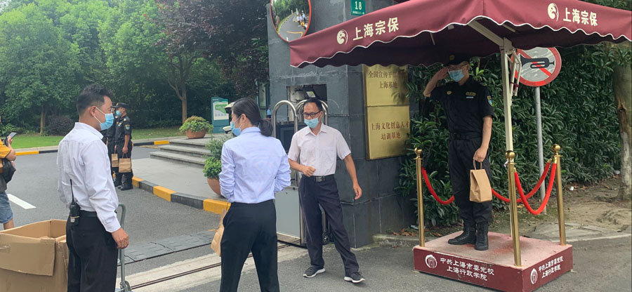 2020年7月31日,在市委党校副校长李渤的带领下,由校机关相关处室领导组成的慰问队,冒着炎炎烈日,分赴市委党校本部、梅陇校区、淀山湖校区,看望慰问辛勤工作在一线的宗保队员。