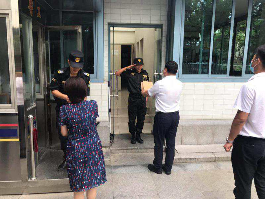 每到一处宗保公司队员都列队欢迎。校领导详细询问了员工的工作情况、身体状况、有哪些需要等,称赞宗保队员们在安保工作中仪容仪表好、业务熟练精湛、车辆指挥有序,对队员们坚守岗位、认真履责、默默付出,确保各校区的安全表示感谢!并嘱咐大家要注意饮食和休息,加强隐患排查,做好高温天气防暑降温工作。队员们纷纷表示,牢记领导的关心,再接再厉,踏实工作,坚决完成好工作任务,不辜负领导的期望和关怀。