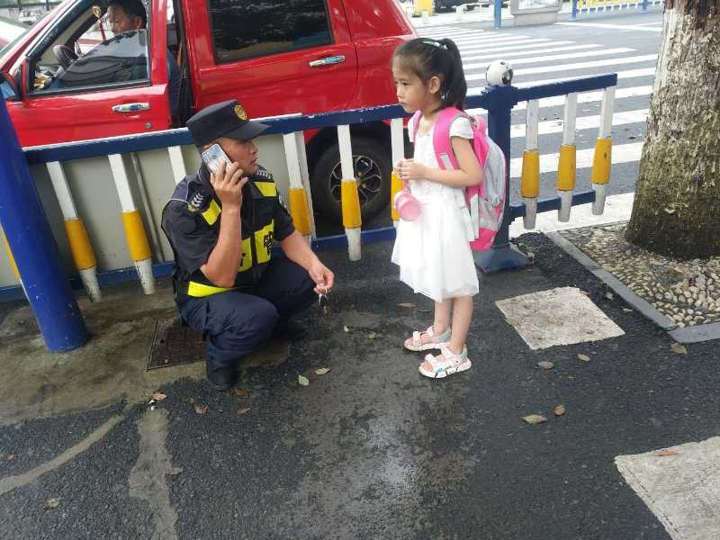 7月28日 17:10,宗保公司黄山休宁项目队员胡春生、谢冬巡逻至女人街时,发现一个小女孩东张西望、神情紧张,独自一个人在过马路。队员见状随即上去询问,得知小女孩与妈妈走散了。幸运的是,小女孩知道家长的联系方式,队员胡春生立即拨通电话让小女孩与家属取得联系。不久,小女孩家属赶到现场,对宗保队员的帮助再三表示感谢。