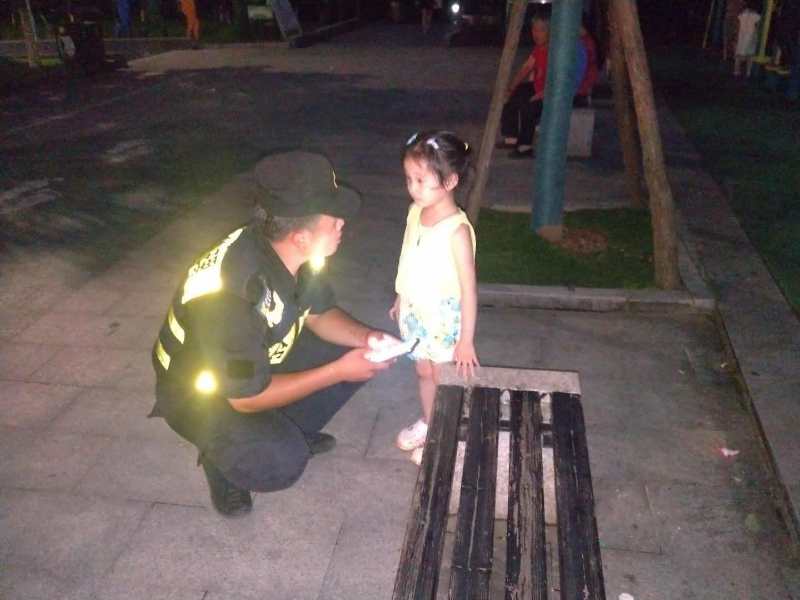 无独有偶,当日19:36,项锦钟、马柯楠两名队员巡逻至横江公园时,听到有小孩哭声,便循声过去,原来是一个小孩找不到家人了。队员陪小孩在原地等待了大概10分钟左右,小孩的外婆来到现场将小孩接走。