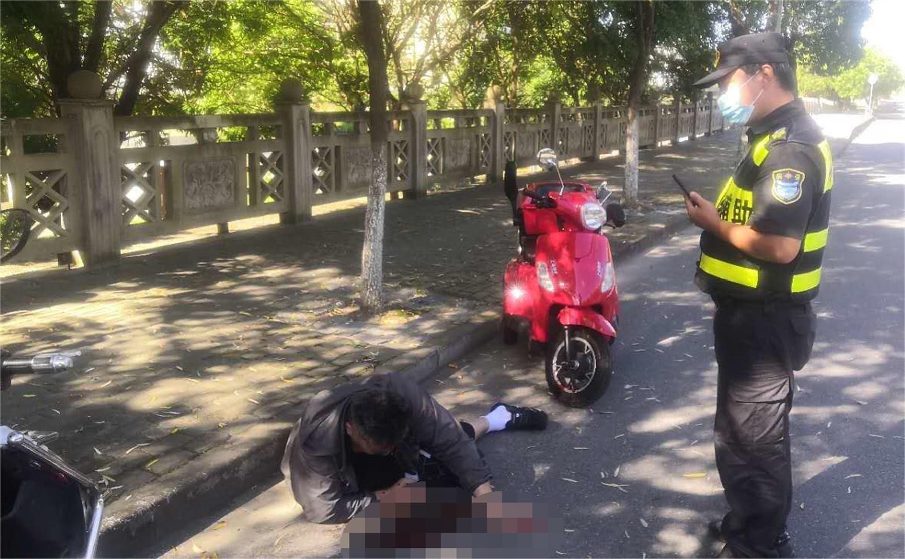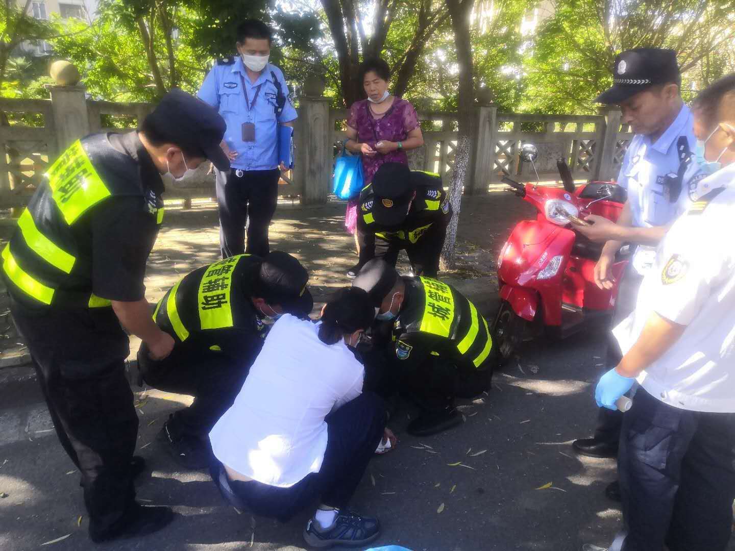 当天7:58,王玉琳巡逻至康浦路康弘路路口时,看到一位老人,坐在路边地上,不停地用头部撞击他的电瓶车。王玉琳见状立马上前阻止,安慰劝导。老人的情绪慢慢地稳定了下来,经过询问,得知老人是因为家里的琐事烦心,想不开才选择这种过激方式释放情绪。王玉琳一边安抚老人,防止他再次做出过激行为;一边打电话报告组长杨云,请求附近队员赶到现场协助。