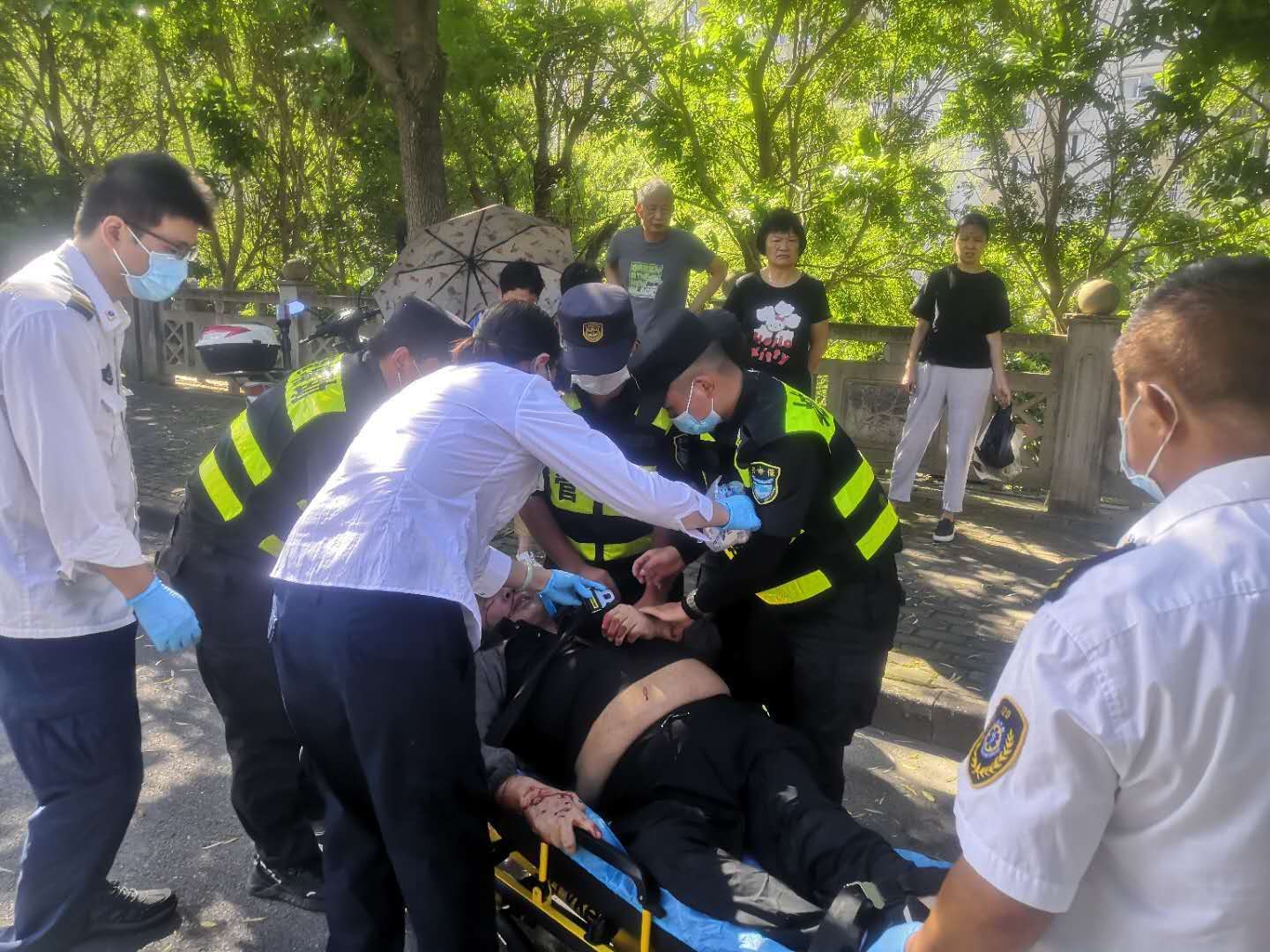 8月3日,公司驻周浦市容城管辅助队员王玉琳巡逻时救助一位自残老人。