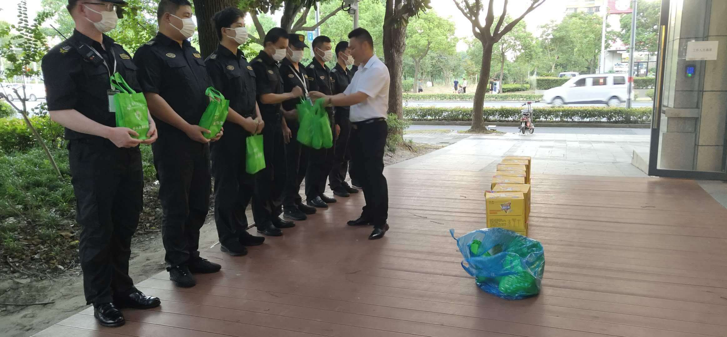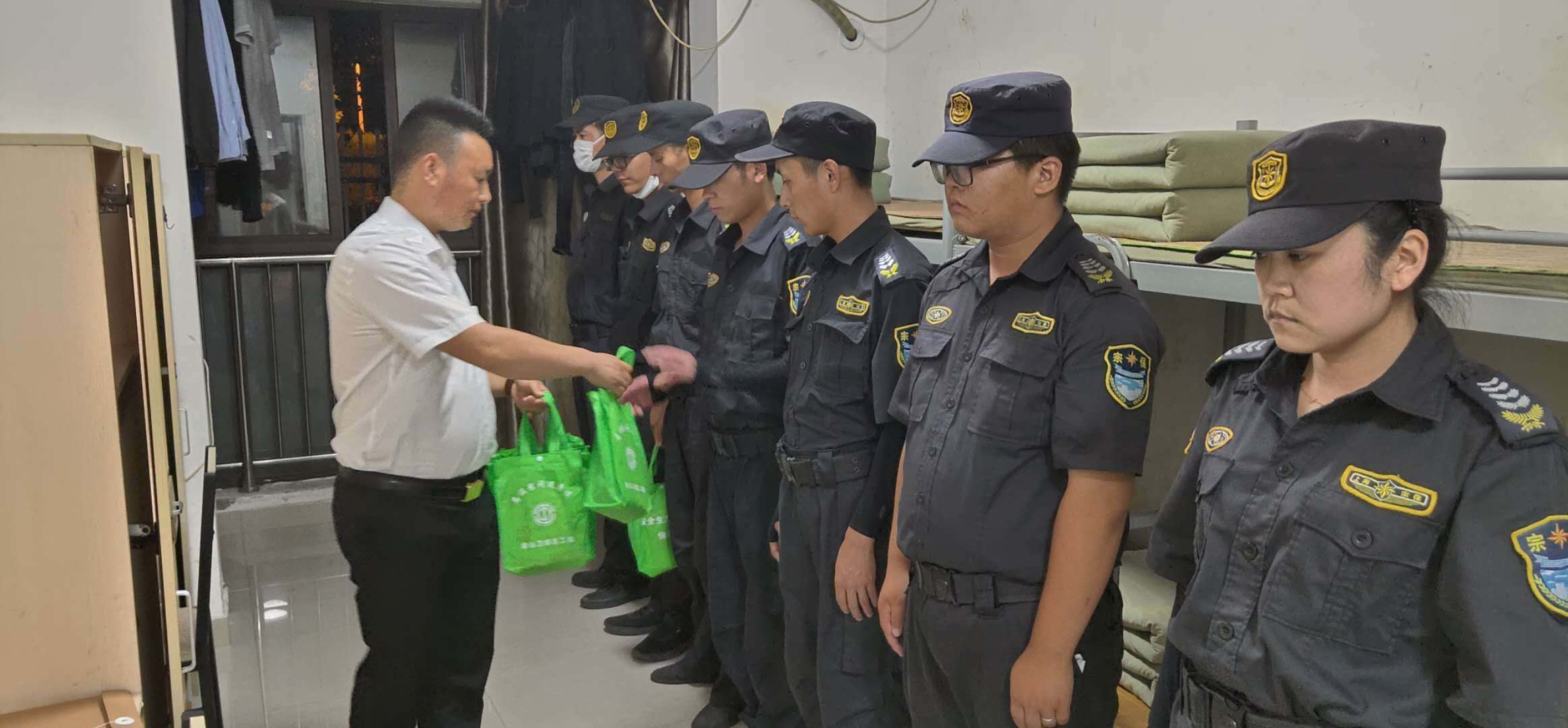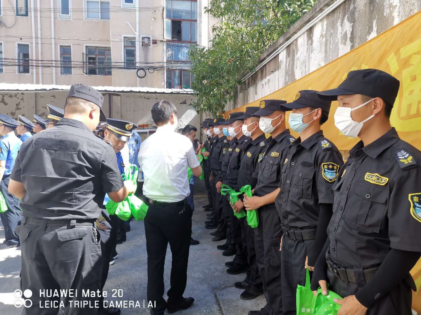 公司驻金奉区域经理苟青安代表公司对镇领导的慰问表示感谢,并将镇领导的慰问和关怀送到每位集中隔离看守点和一线岗位上的队员,要大家在战高温做好防暑降温的同时,不辜负领导的关心和爱护,圆满完成好集中隔离人员的看护任务。