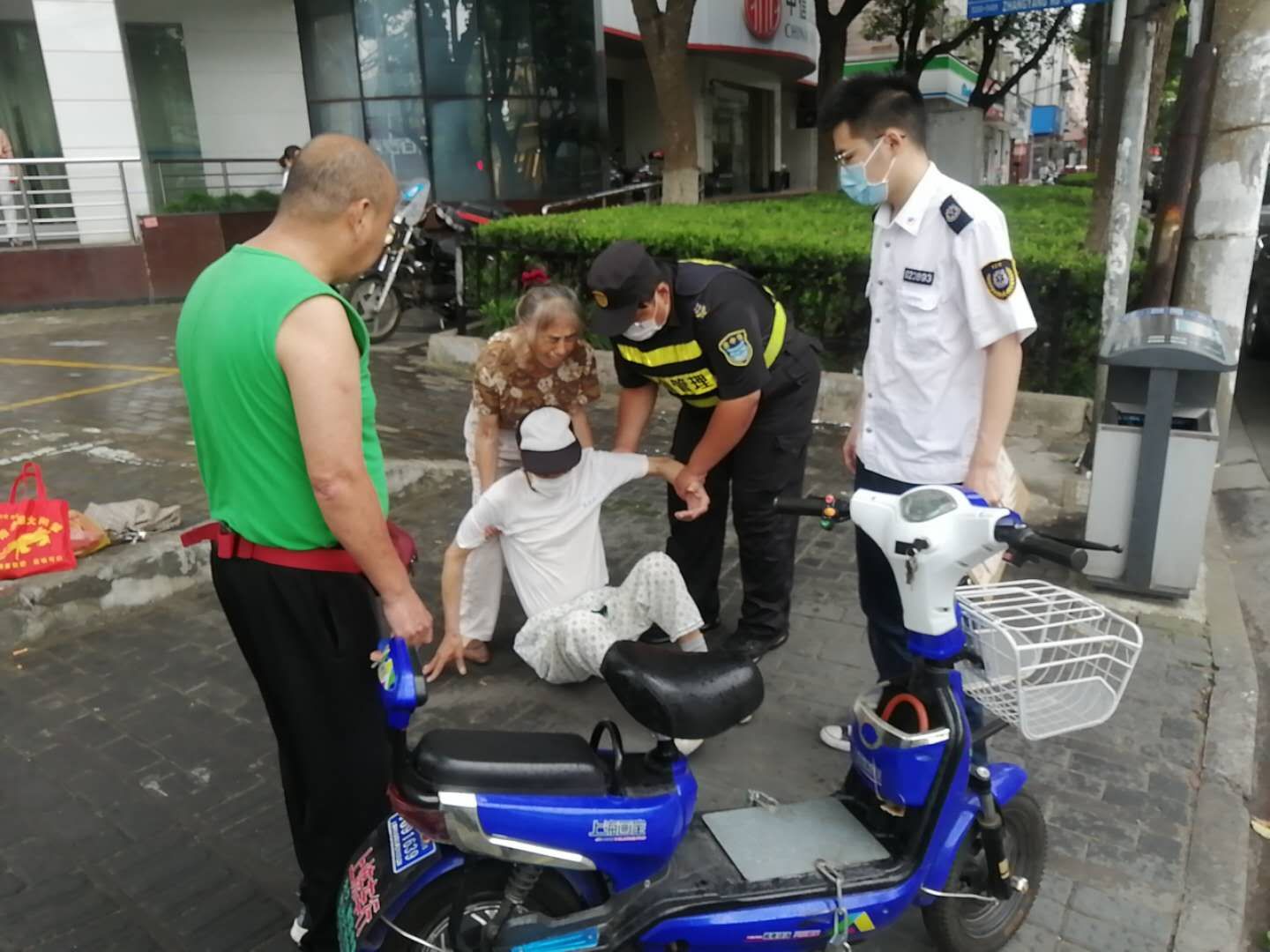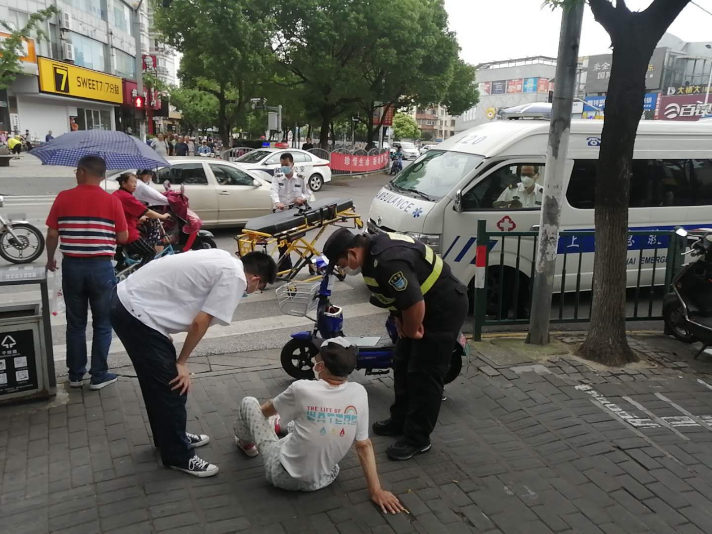 当天15:40左右,郑世豪和陈睿巡逻到张杨北路清溪路交叉口时,看到一位老人坐在地上,一辆电瓶车倒在一旁。见此情景,郑世豪和陈睿急忙跑向前,询问老人受伤情况。老大爷说自己骑电瓶车避让行人不小心摔倒了,腿上、胳膊上擦破点皮不要紧,就是觉得有点头疼,感觉脑子有点迷糊。