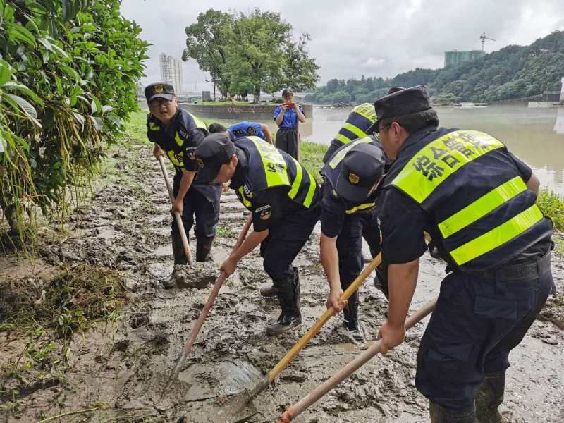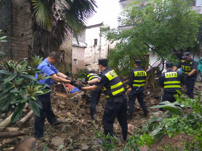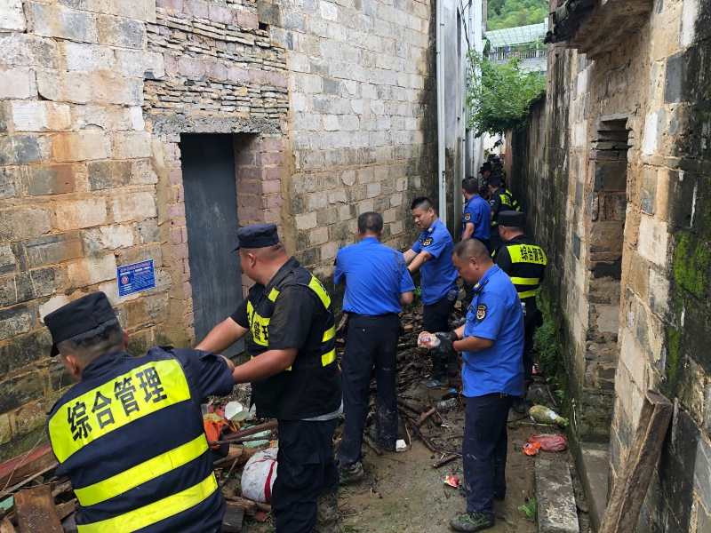 宗保公司驻休宁市容项目全体人员积极响应县城管执法局号召,先后出动200余人次,不分昼夜、连续奋战,参加防汛排涝、护航学子高考、进行灾后重建。