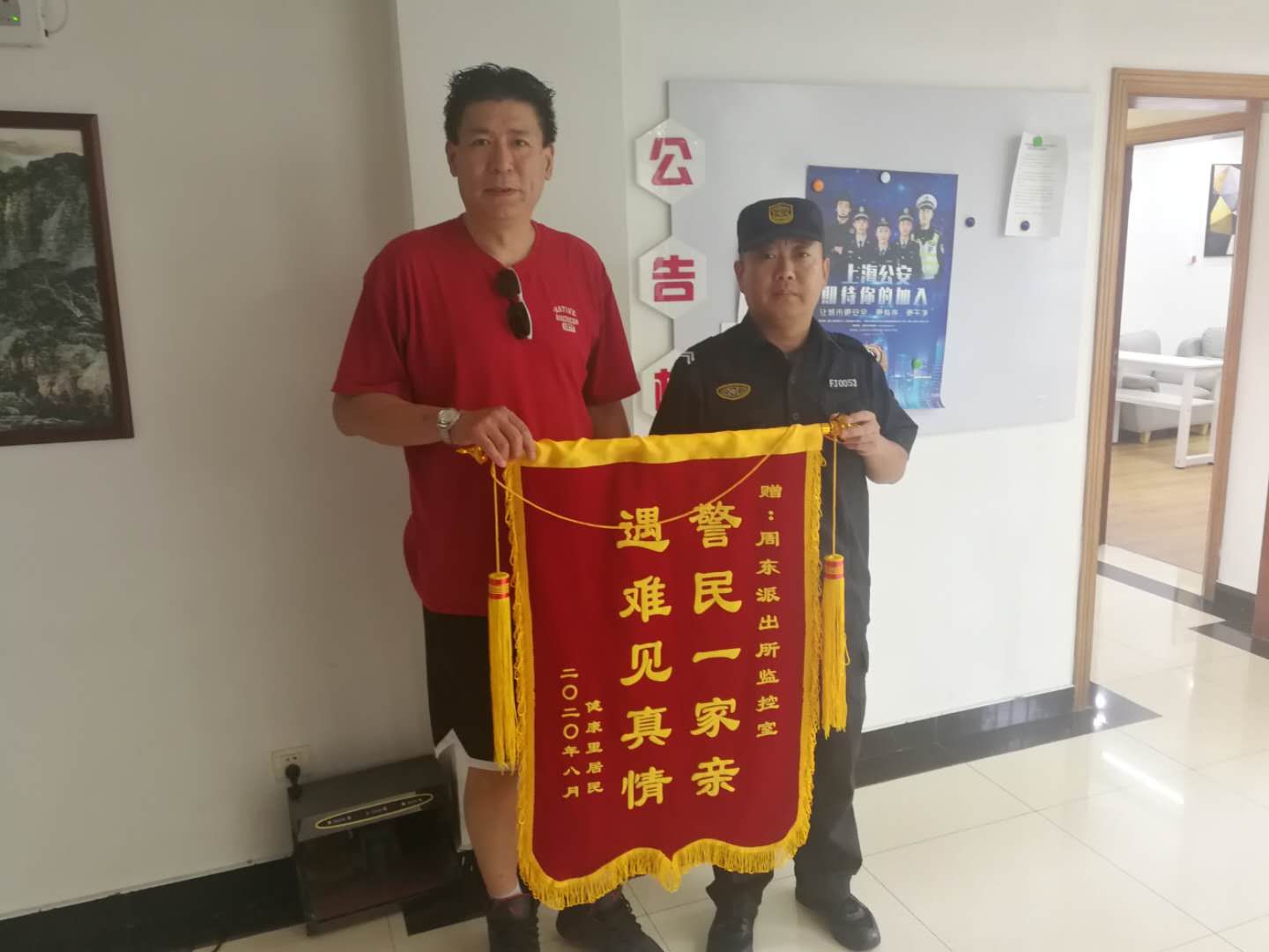 8月7日,一位男士将一面绣着“警民一家亲,遇难见真情”的锦旗送到了周东派出所,感谢派出所监控室帮助他找到丢失的钱包。
