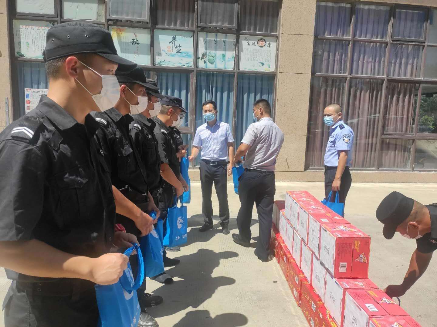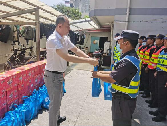 公司领导每到一处都询问员工的工作,关心员工的生活,送上防暑降温用品,叮嘱大家在完成好工作任务的同时,一定要注意劳逸结合,做好自我防护,防止高温中暑。