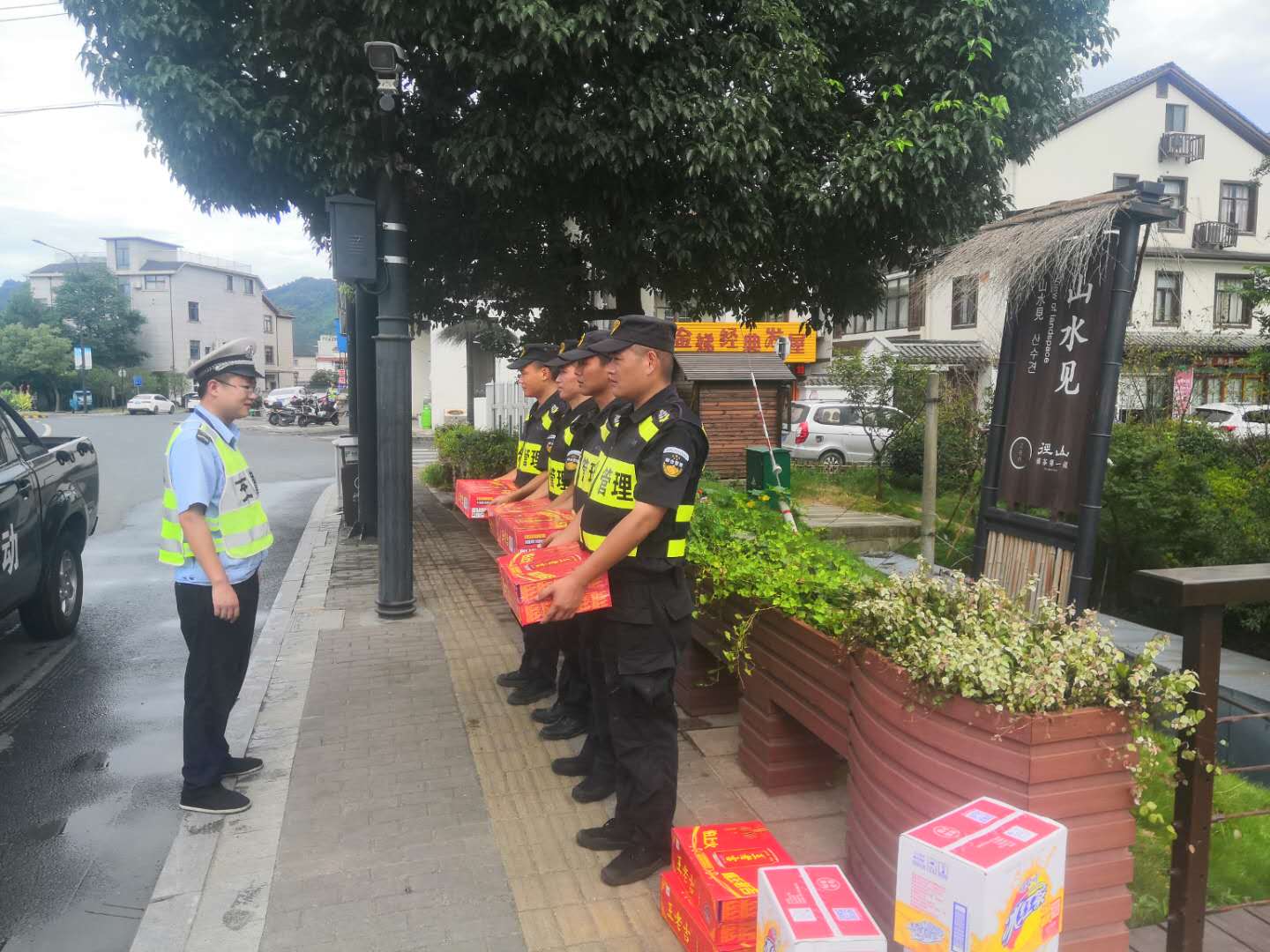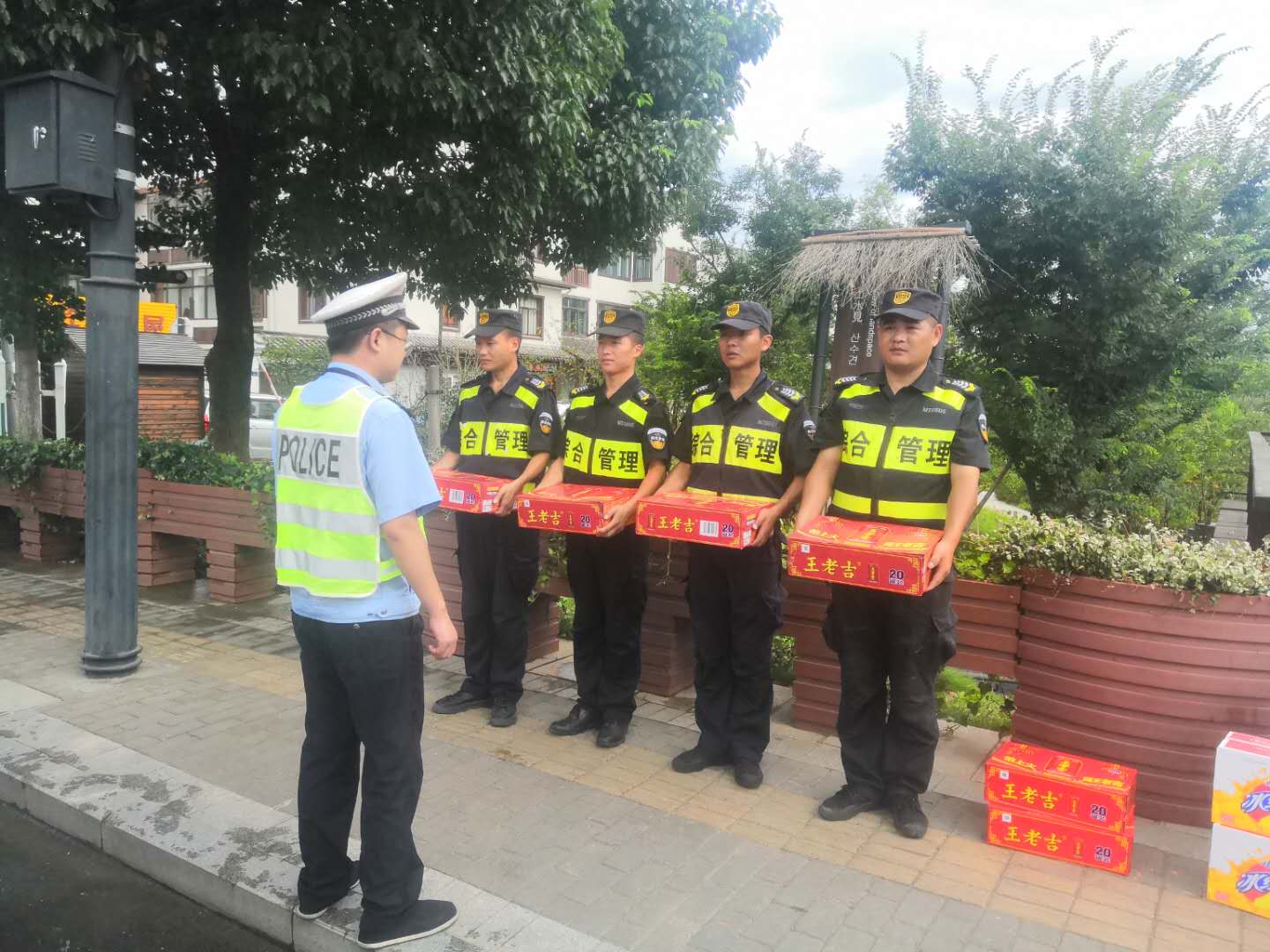 8月6日,烈日当头,骄阳似火,大联动队长朱佳豪代表甲方领导对公司驻径山市容项目一线队员进行慰问,赠送防暑降温用品。 朱佳豪队长来到路口看望正在执勤的队员,对大家不畏烈日高温,坚守岗位的工作态度、敬业执着的精神风貌给予充分肯定和赞扬,叮嘱大家一定要注意做好防暑降温。 朱佳豪队长希望大家克服高温天气带来的不利影响,继续保持和发扬不怕苦不怕累的精神,高标准高质量地履行好工作职责,为群众出行创造更加安全和谐的交通环境,为径山镇创建国家卫生城镇而努力! 供稿人:陈超