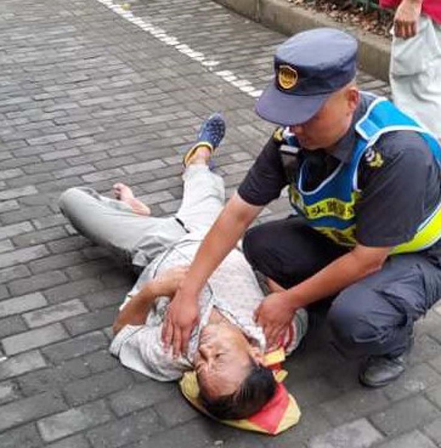8月11日8点左右,小网格副组长刘昆和队员宋文松进行网格巡查时,发现一位老人躺在路边人行道上。