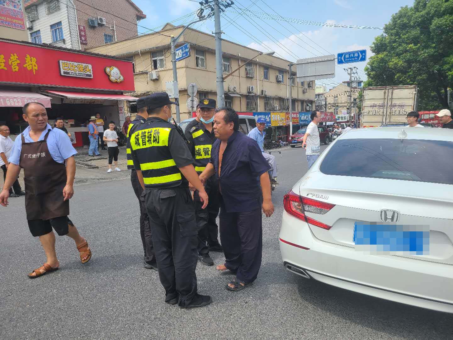9月4日,周浦市容队员李虎,巡逻到瓦屑建设桥北社区门口时,发现一名醉酒男子欲追打周观群众,便果断制止,避免了恶性事件的发生。