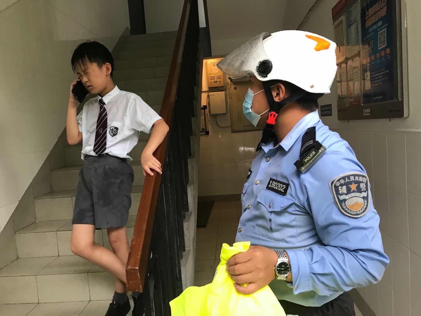 征得该学生同意,问清了他的具体家庭地址后,王轲使用巡逻电动车将该名学生护送至家中,待其母亲回家后才离开。离开前,还不忘叮嘱尽快把湿衣服换掉,喝点热茶以免着凉。