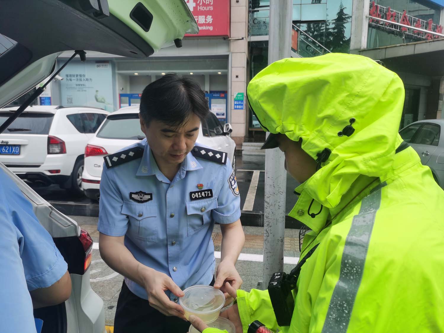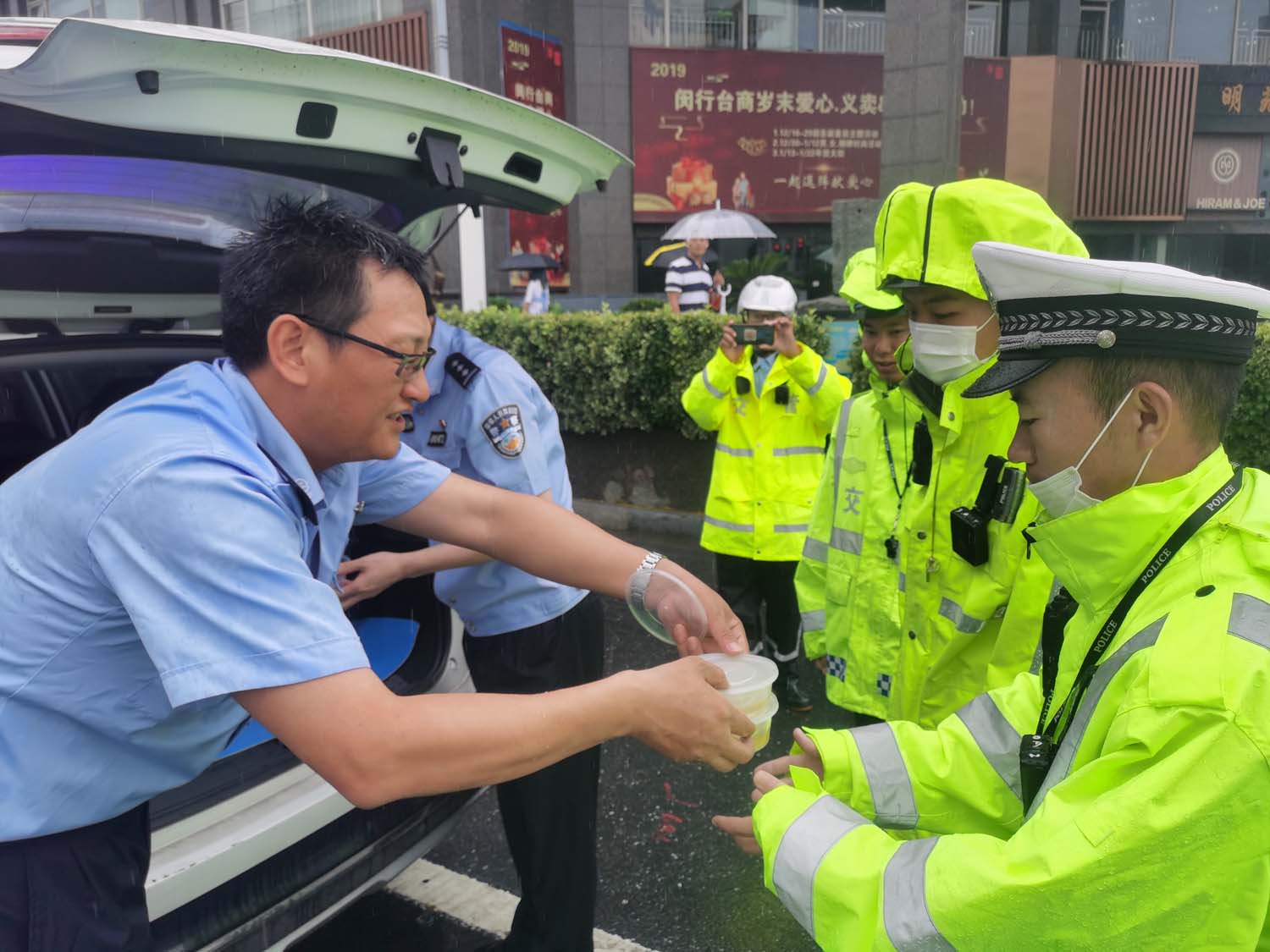创全工作进入关键时刻,连日来阴雨连连、天气湿冷,队员们不辞辛苦、担当克难,依然坚守在一线。韩伟华教导员、王磊副所长代表两个派出所为队员发放姜汤送上诚挚的慰问,并提醒大家天气变化异常,做好防护保重身体。同时,叮嘱大家一定要注意劳逸结合,牢固树立安全意识,确保安全和身体健康。