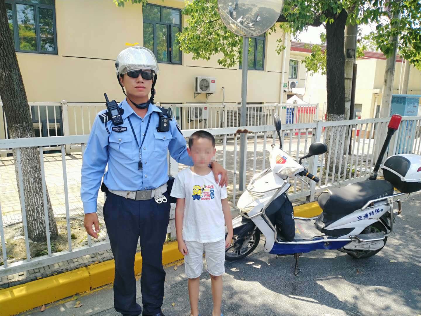 8月25日,莘庄梅陇交通辅警项目队员邓望在莲花路与S2O高速公路交接处执勤时,发现一个迷路男孩并帮助其找到家人。