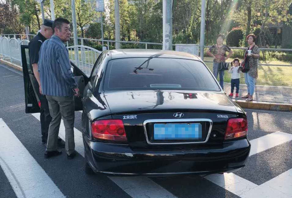当日6:40,杨俊国上班路上看到一辆轿车停在一红绿灯路口熄火不走,便上前询问。原来车主的轿车电瓶没电了,刚好熄火停在红绿灯路口,走不了影响交通,自己也没有办法,只能干着急。