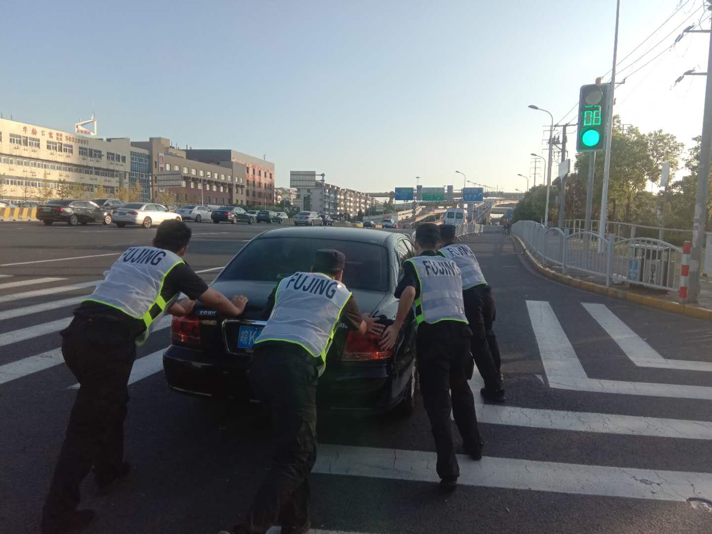 9月27日,公司驻金桥治安派出所辅警项目队员杨俊国在上班途中帮助一熄火轿车车主。