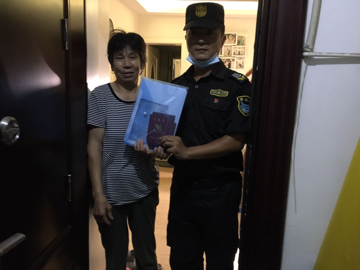 两位队员想到失主丢失了证件,一定很着急,便按照户口本上的地址寻找。功夫不负有心人,终于找到失主,经过核实确认后,将文件袋还给了失主。