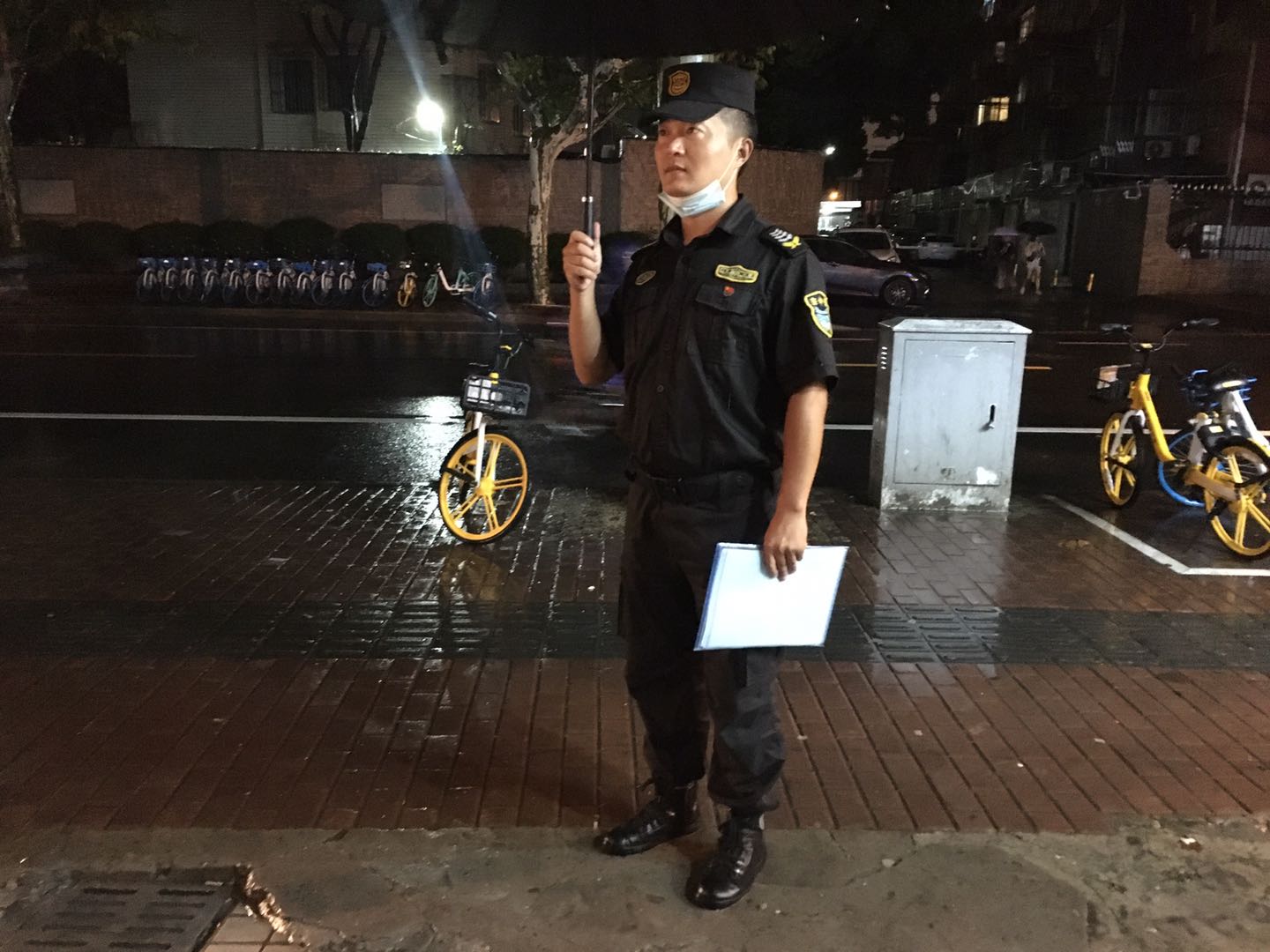 当日19:20,于宏明下班途中经过徐汇区桂平路时,发现一辆共享单车置物篮里有一个文件袋,当时下着雨,四周无人,便在雨中等候失主过来。