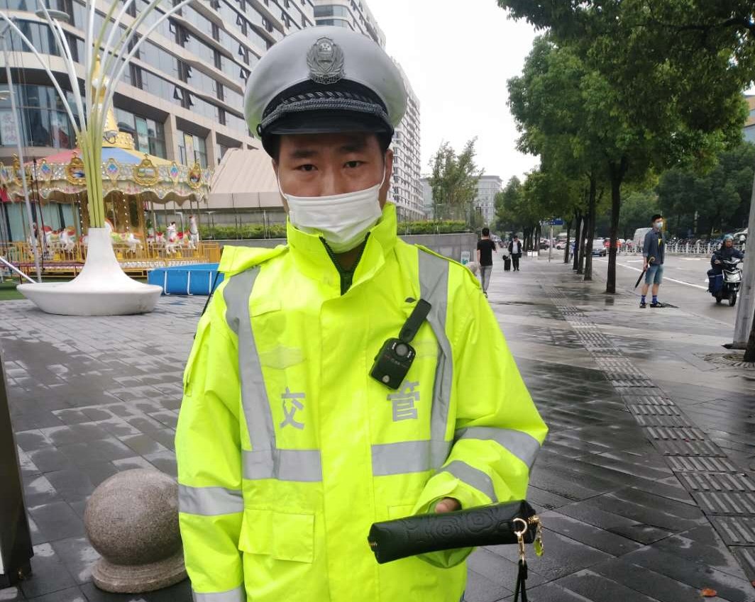 9月18日,闵行虹桥交管辅警项目队员冯琳琳捡到黑色皮包归还失主,获得赞扬。
