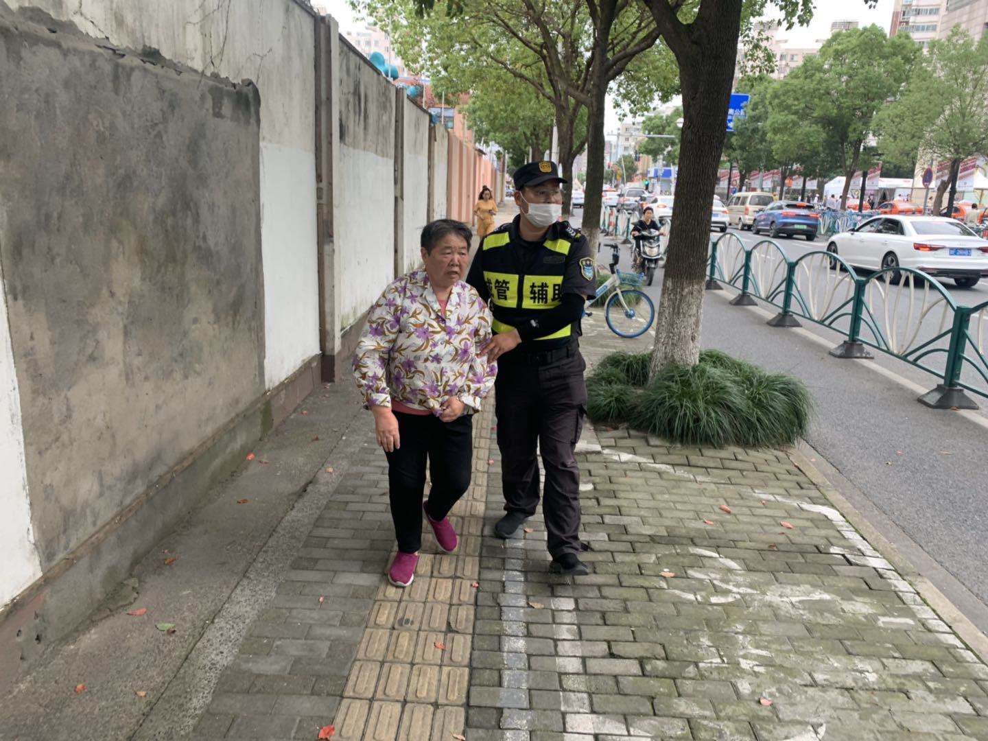 老阿姨说话前言不搭后语,对于自家的住址和联系方式一概不知。正当队员准备给派出所打电话时,阿姨的老伴正好找到这里。