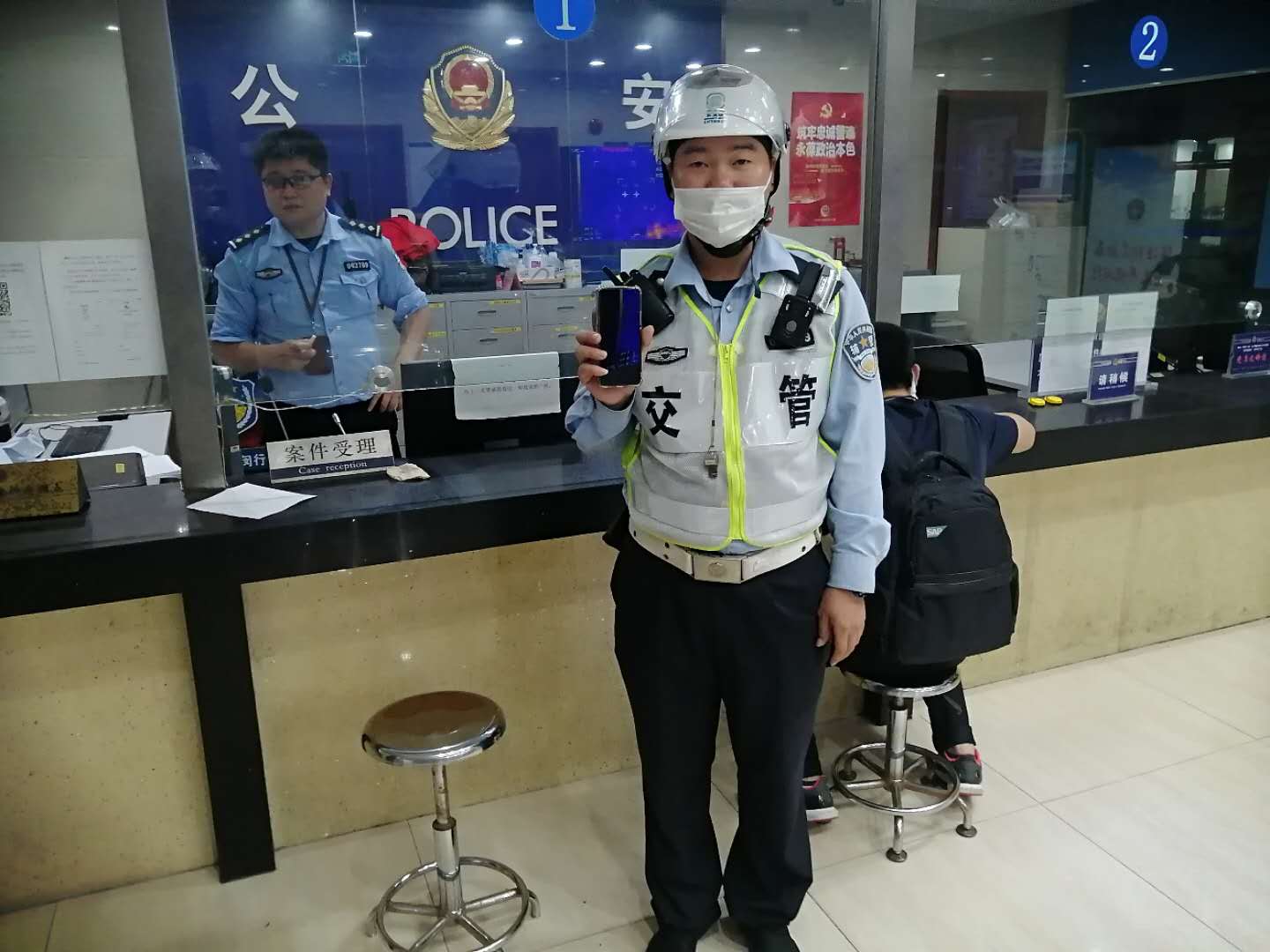 10月10日,宗保公司驻闵行虹桥辅警项目队员汪俊连捡到手机上交民警。 当天19:30左右,汪俊连在吴中虹莘路口值勤时,捡到一部手机,询问路人,无人认领,想到失主一定焦急万分,就一边值勤,一边等待失主,但直到值勤结束,也没等到失主。 汪俊连下班后,第一时间上报带班队长,并将手机交到虹桥派出所值班民警手中。 供稿人:周鹍
