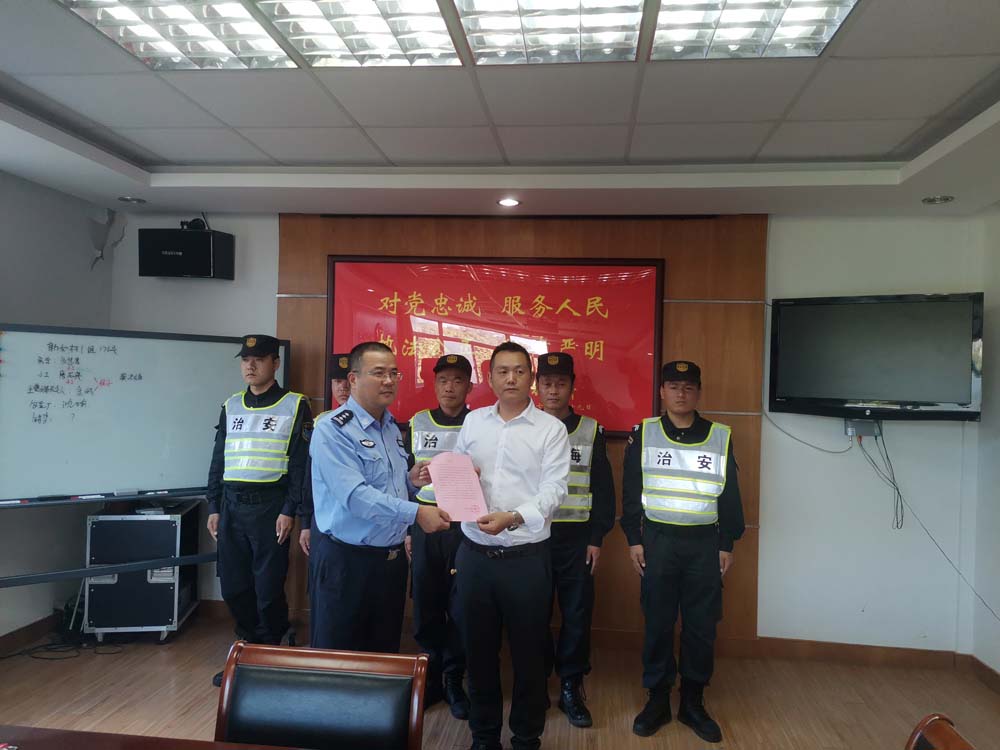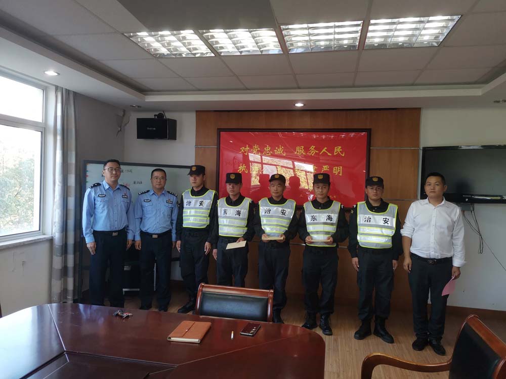 东海派出所领导组织项目全体队员开会,对宗保队员勇敢、机智、认真负责、踏实肯干的精神给予了高度评价,对表现突出的五名队员进行奖励,并给宗保公司送去表扬信以示鼓励。