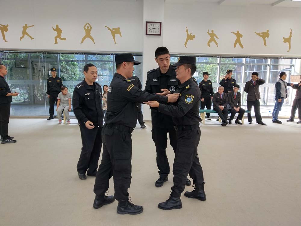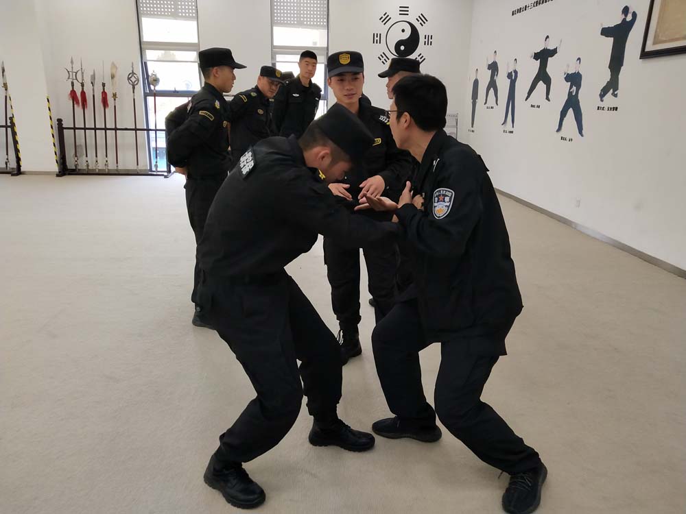 教官首先讲解了突然遇袭时个人防护的原则与要点,应对冲击事件的处置方法,从理论上为队员们解疑释惑。随后,组织单兵徒手器械技能、分组配合演练及室外现场实战演练,主要针对校大门受到外来人员不同程度冲击时,校安保力量如何依法依规迅速有效进行处置。