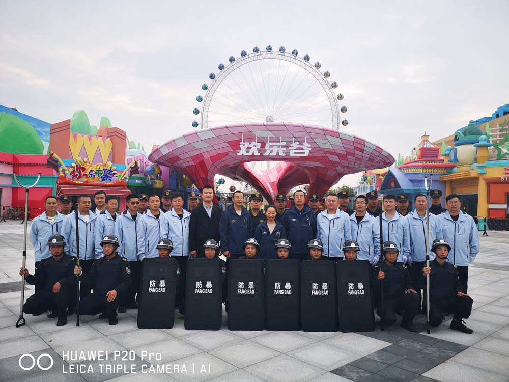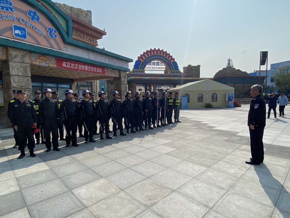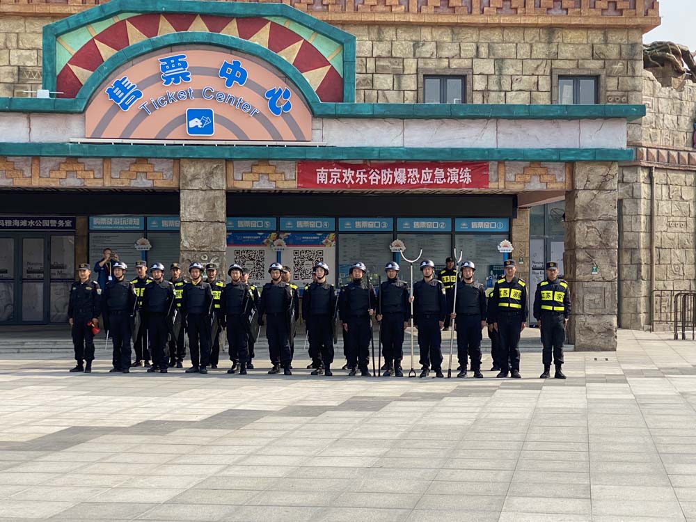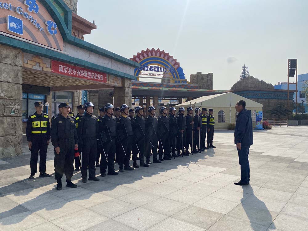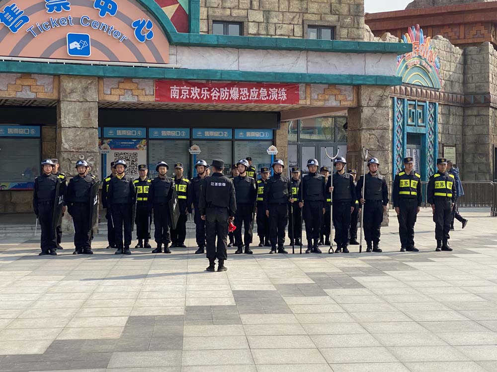 当天,南京市栖霞派出所副所长张玉、南京华侨城欢乐谷副总经理董本丽等一行,现场观摩指导公司驻欢乐谷项目队员防暴恐应急演练。