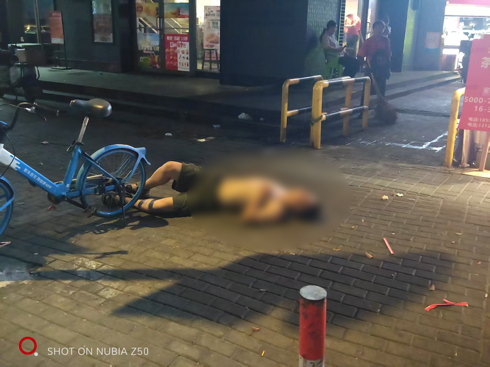 当日凌晨1:00左右,公司员工孙亚锋和徐英浩巡逻至周泰路瑞建路路口时,发现一名男子赤裸着上身躺在地上,便赶紧上前察看。
