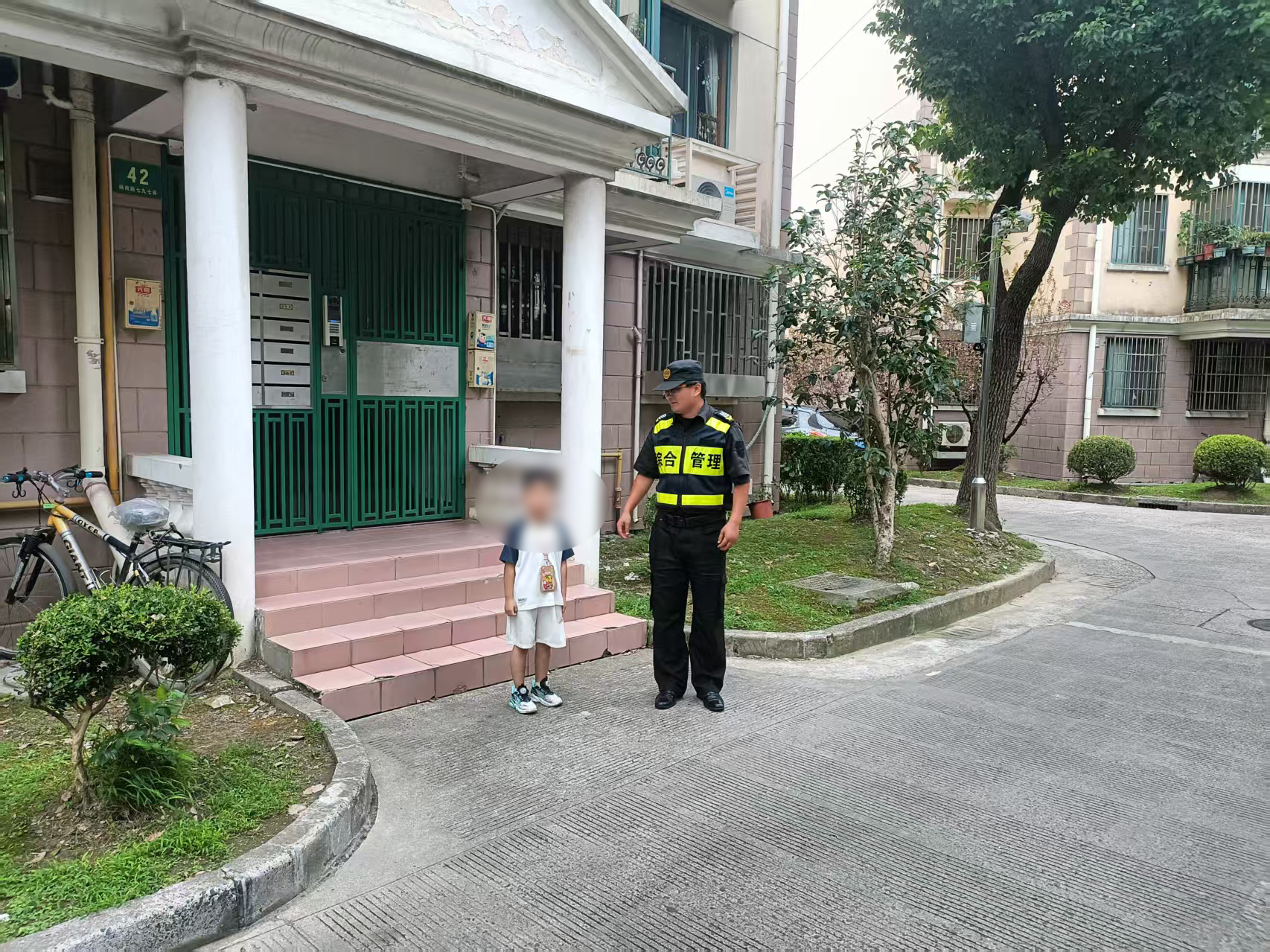 为尽快帮助男孩与家人团聚,方勇迅速呼叫附近同事共同展开排查。大家分头走访周边小区,重点寻找门牌号为“42号”的住户。终于在纯翠苑小区门口,值班保安提供关键线索:刚刚有一户居住在杨南路某弄42号的居民前来求助,称家中孩子走失。